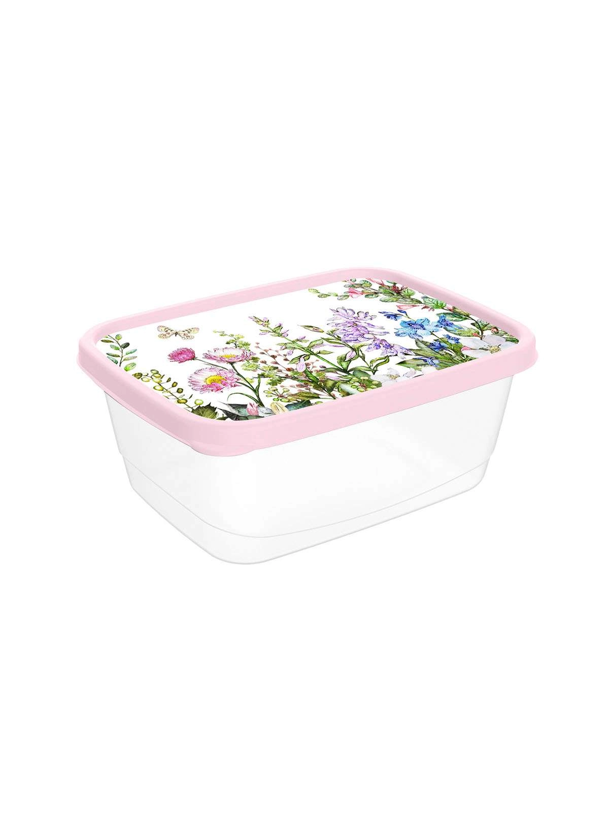 Контейнер для продуктов прямоугольный 0,5л с декором "Цветущий луг" (светло-розовый)