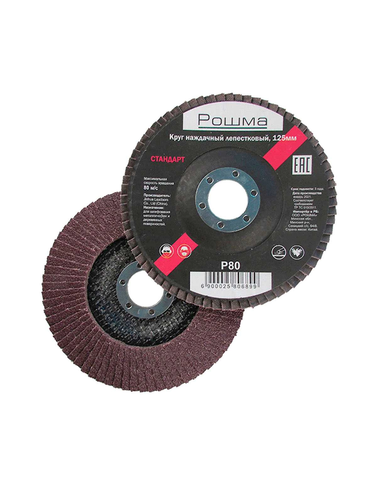 Круг наждачный лепестковый СТАНДАРТ, 125х22,2мм, Р-80