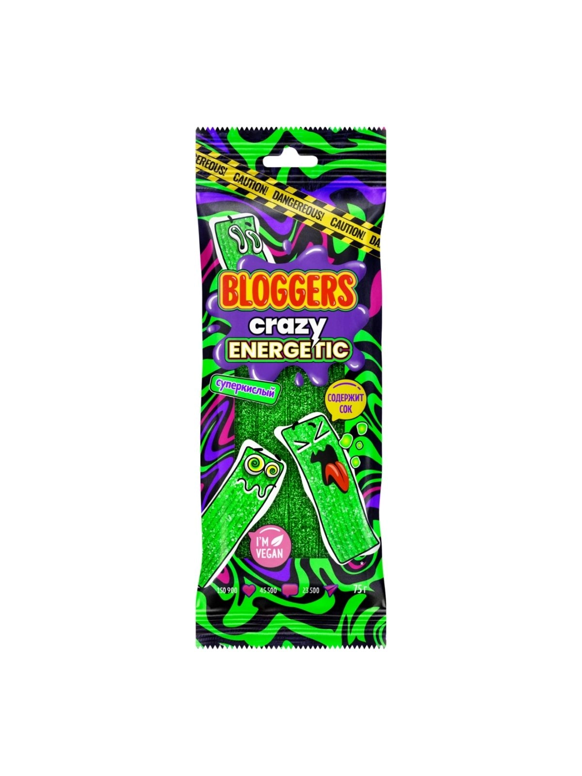 Мармелад BLOGGERS  "Крейзи Энергетик" (ремешки) в кисло-сладкой обсыпке жеват. со вкусом энергетик. 75г