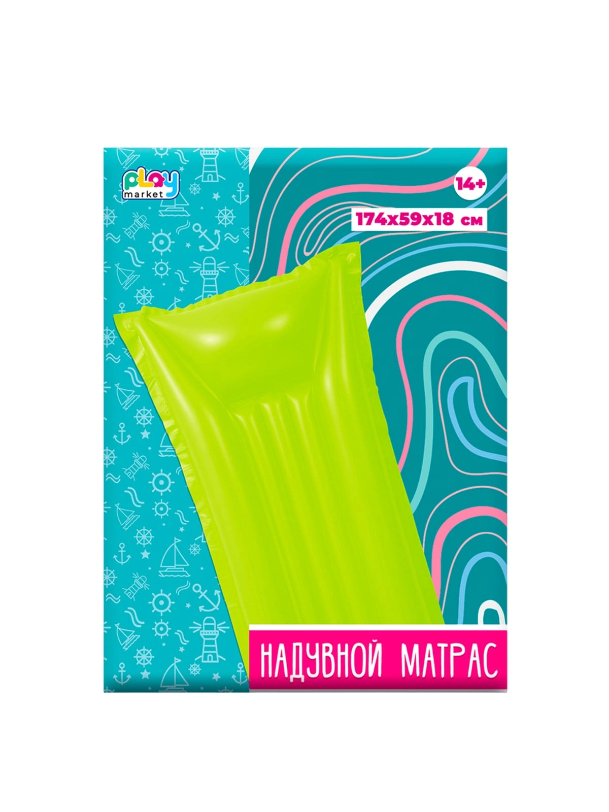 Матрас для плавания надувной "Play Market" Зеленый, ПВХ, 174*59*18см