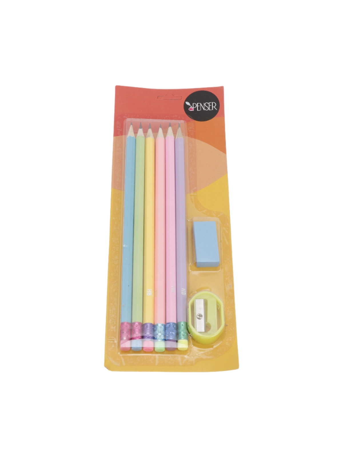 карандаши - 6 шт, точилка, ластик