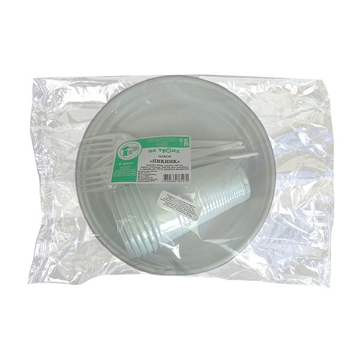 Набор "Пикник": 6 тарелок d=20,5 см, 6 стаканов 200 мл, 6 вилок столовых
