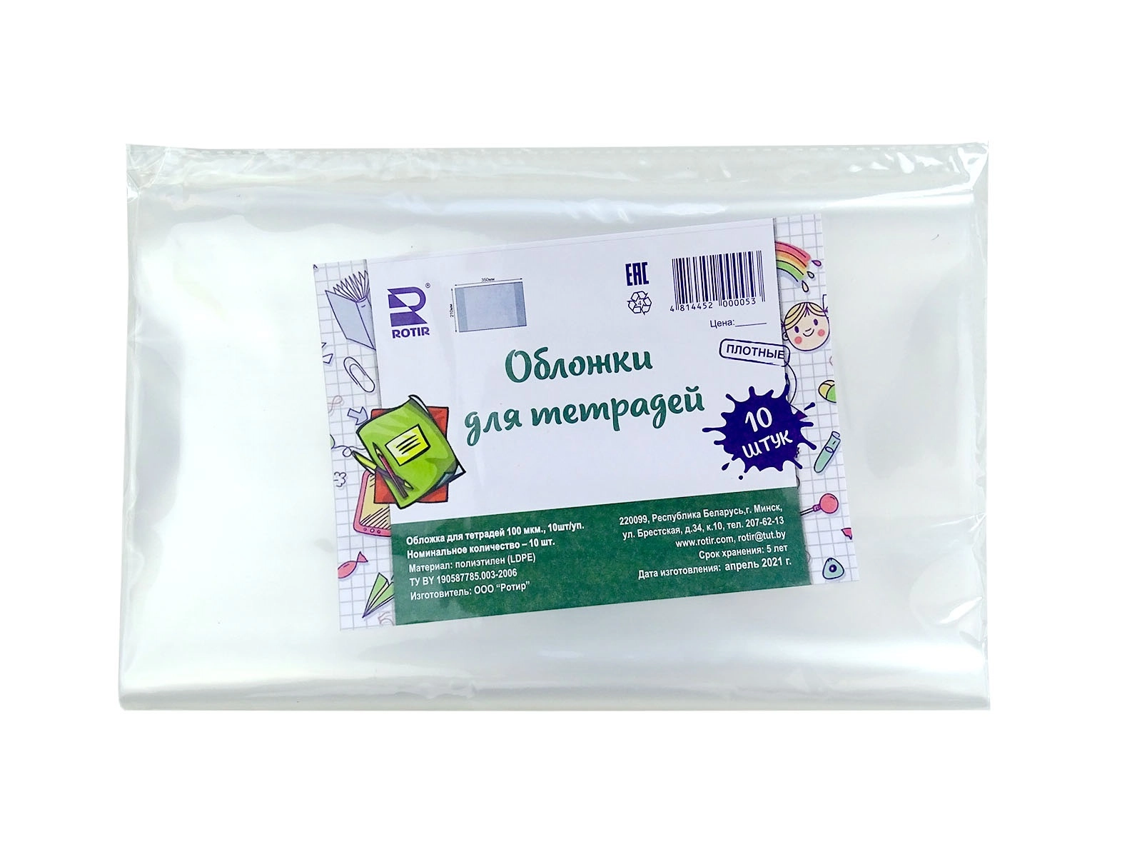Обложка для тетрадей 10шт, 100мкм