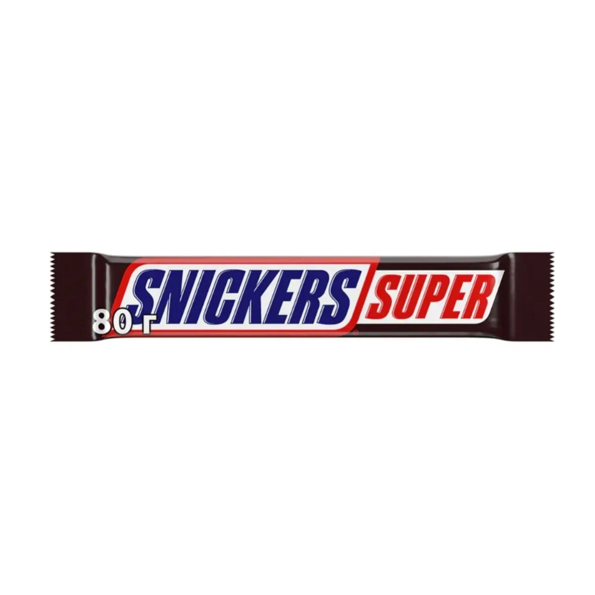 Шоколадный батончик SNICKERS SUPER с жареным арахисом, карамелью и нугой, покрытый молочным шоколадом 80г