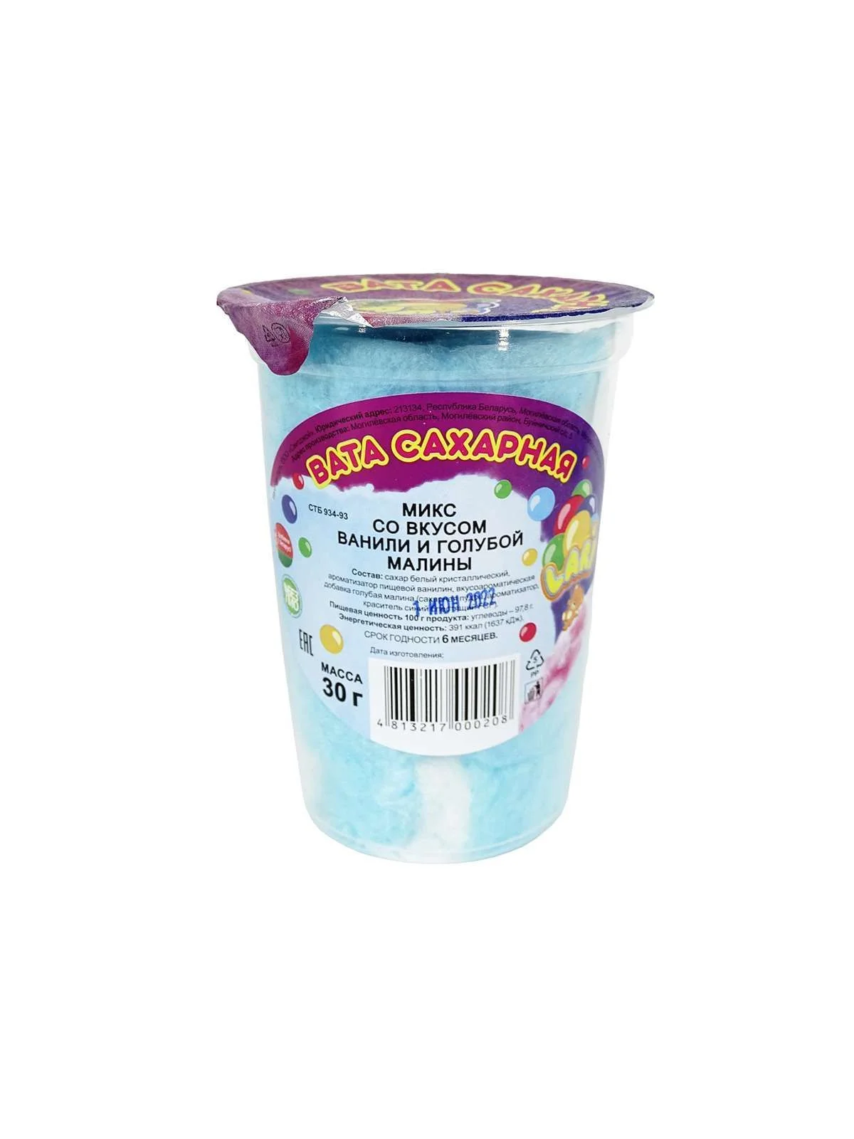 Вата сахарная LARI со вкусом ванили и голубой малины, 30 г