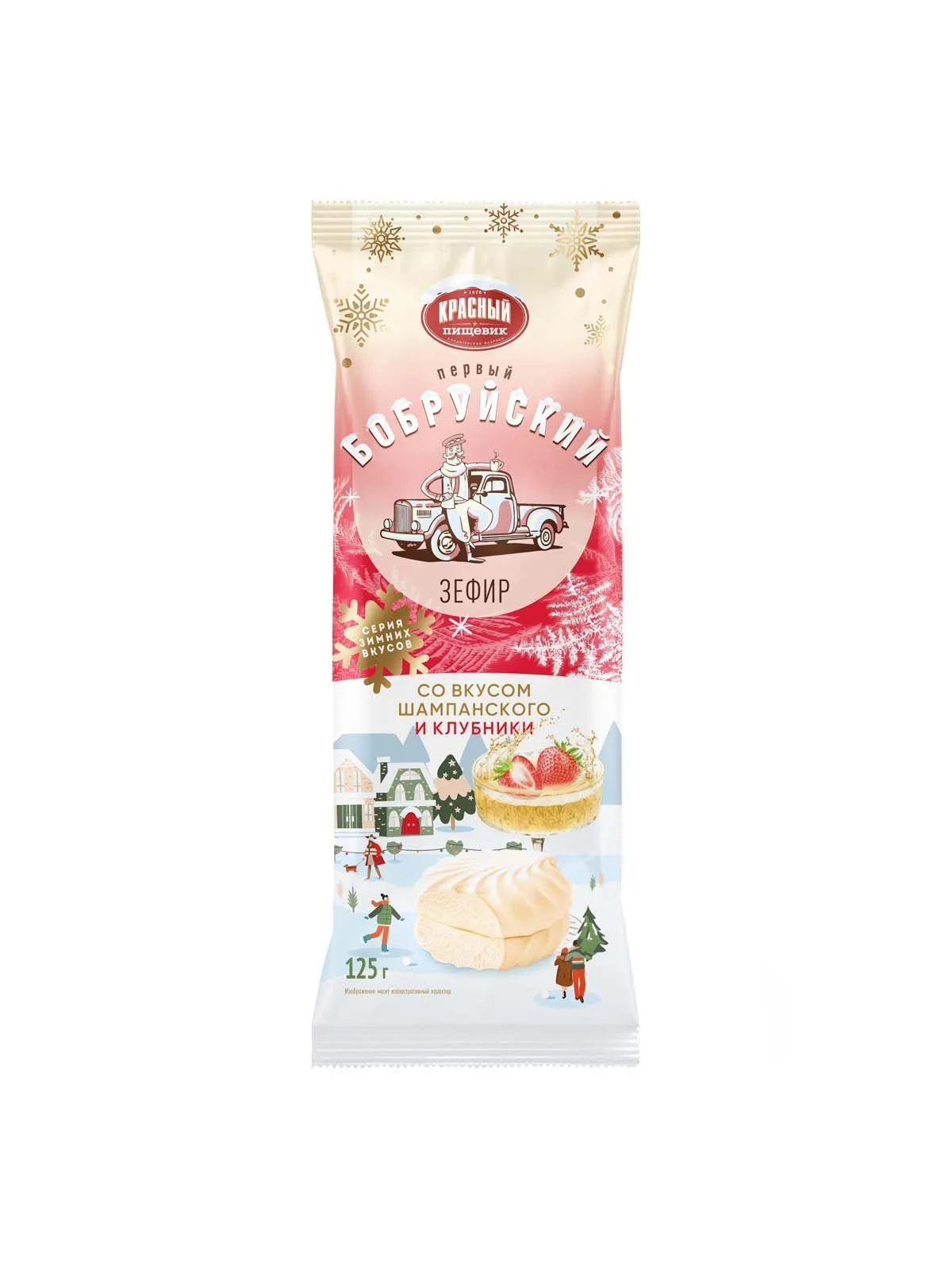 Зефир со вкусом шампанского и клубники 125г.
