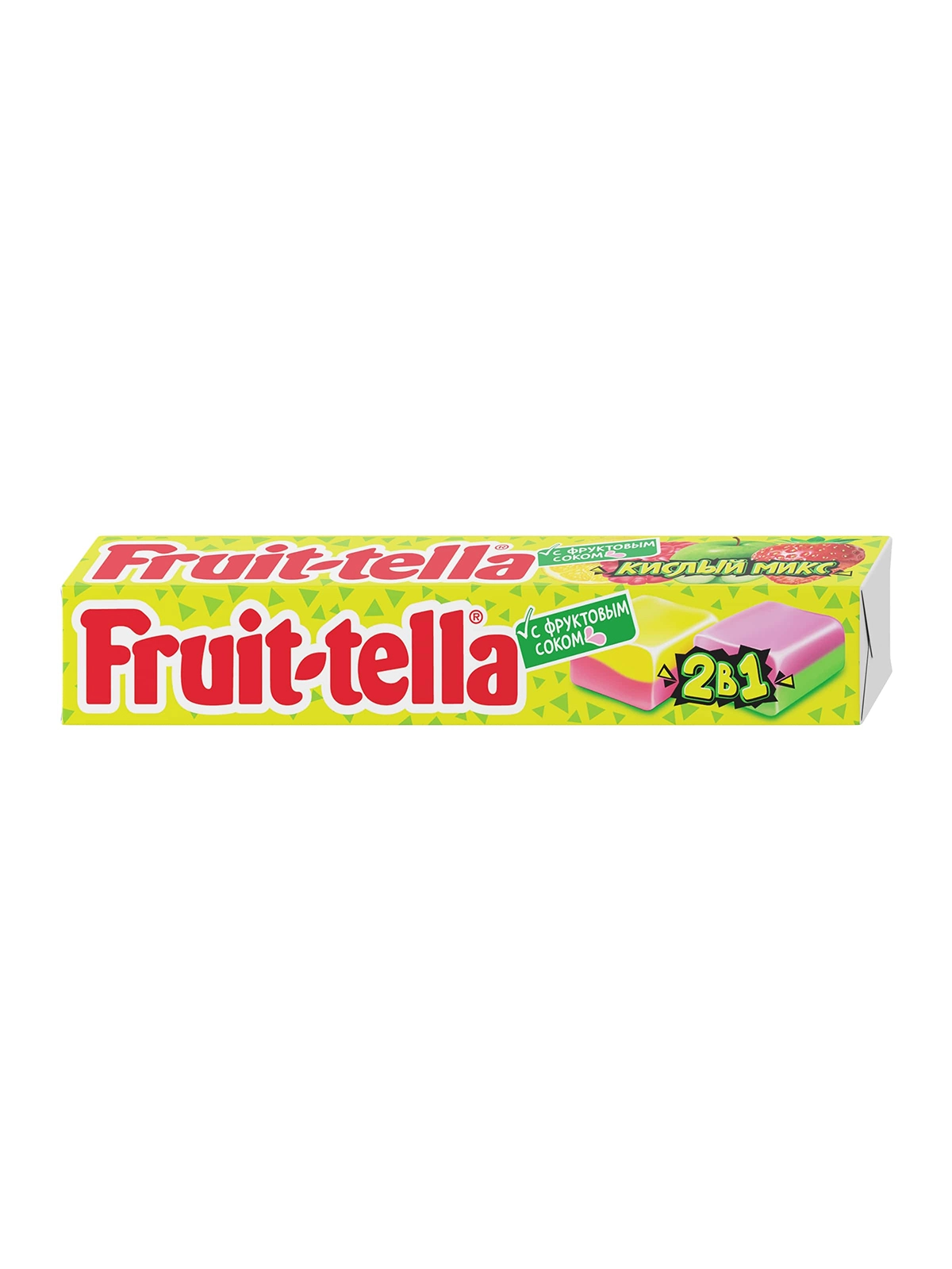 Жевательные конфеты "FRUITTELLA кислый микс 2в1" со вкусами яблока и клубники, лимона и малины 41г_9х21шт