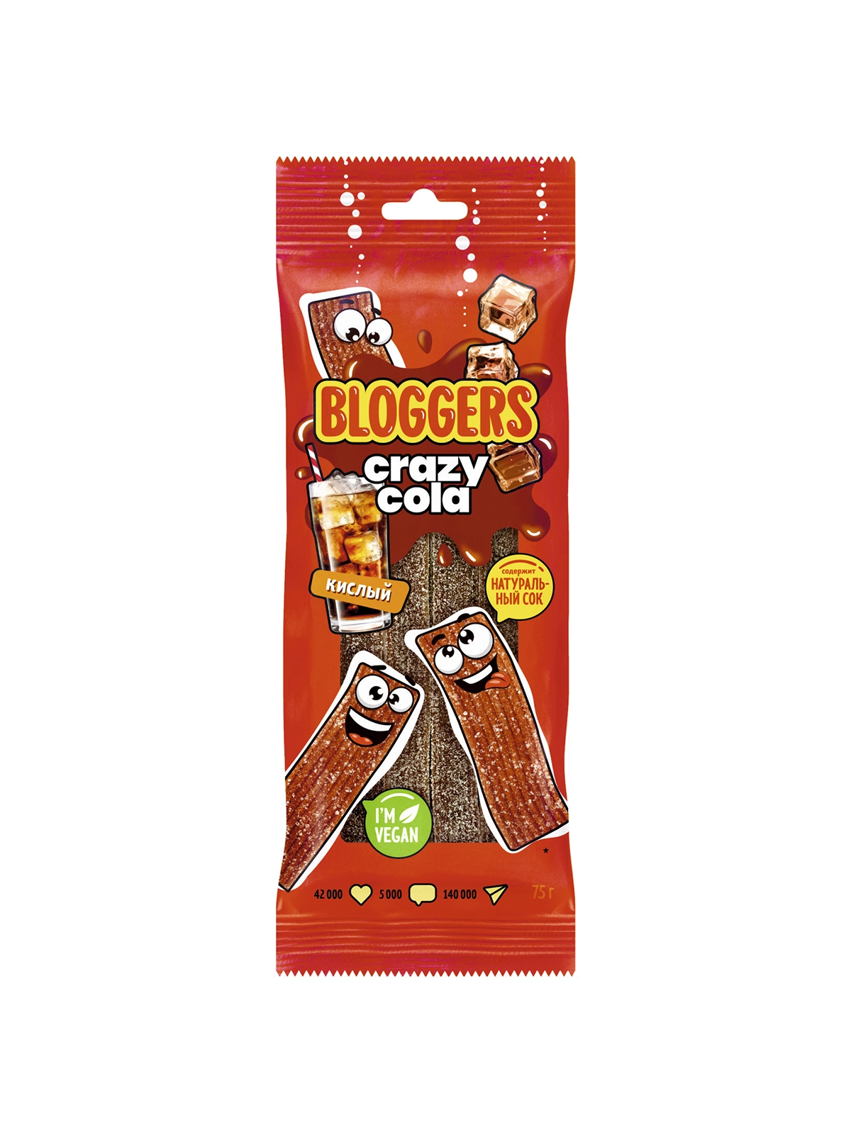 Мармелад BLOGGERS Крейзи Эйпл" (трубочка) в кисло-сладкой обсыпке 75г