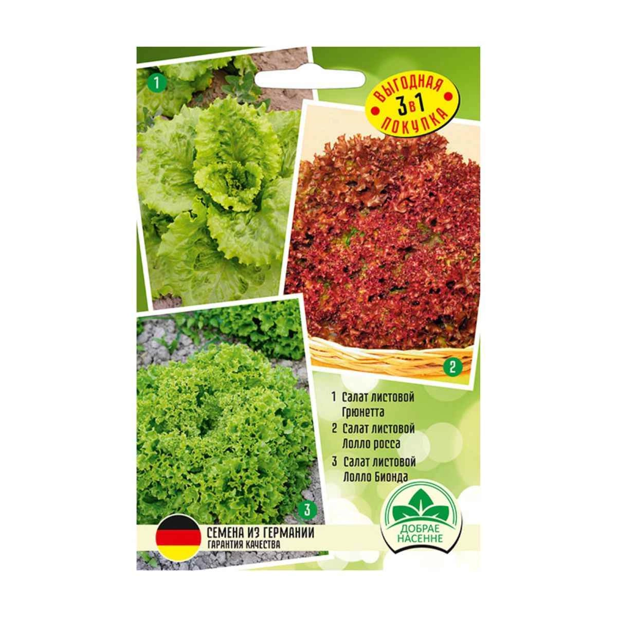 Набор семян Салат листовой Грюнетта, салат листовой Лолло Росса, Салат листовой Лолло Бионда