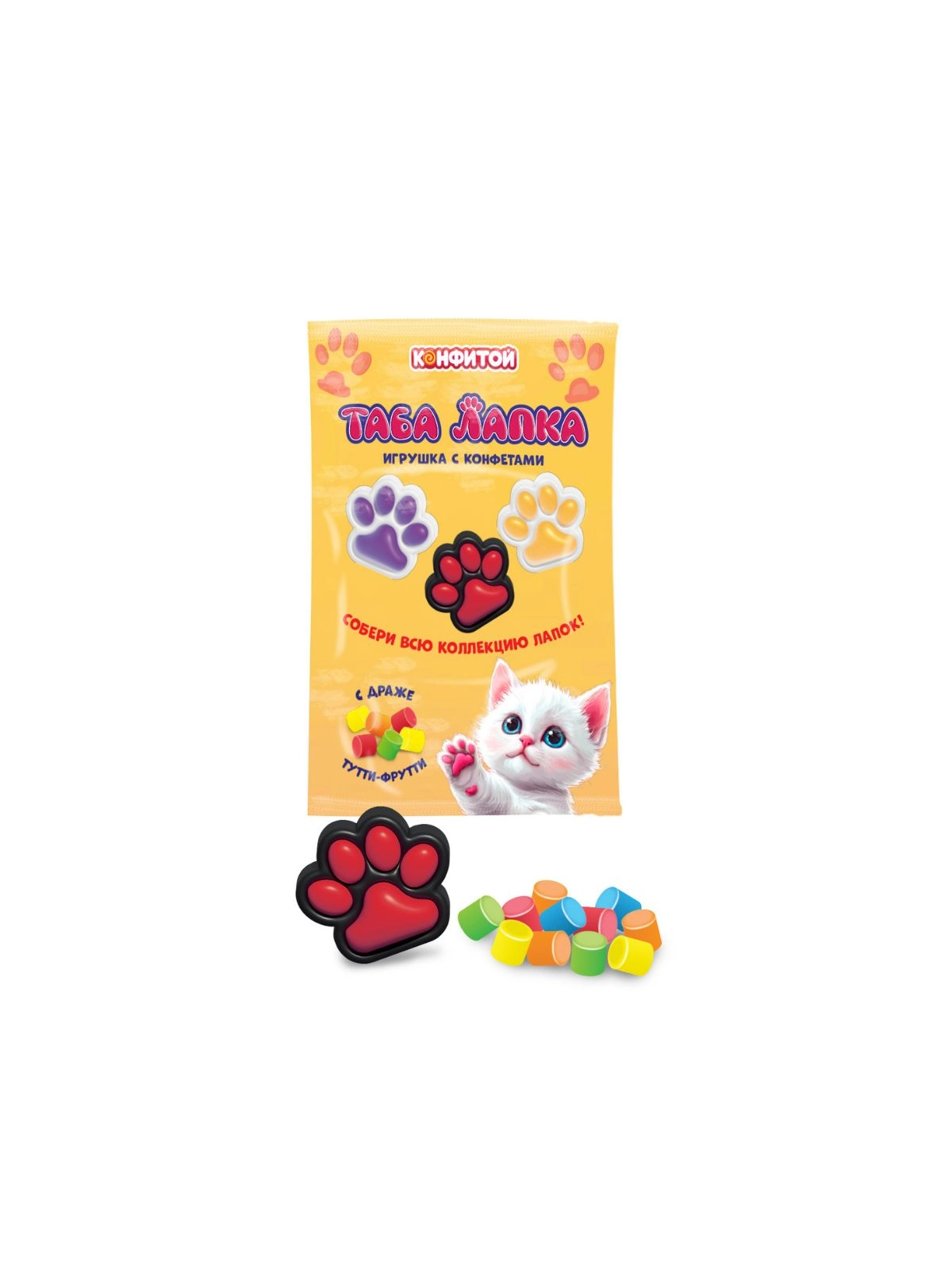 глюкоза, агент антислеживающий (Е470b), мальтозный сироп, мальтодекстрин, регулятор кислотности (Е330),  ароматизатор ("тутти-фрутти"), красители (E102, E110, E129, E133).