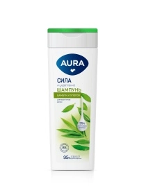Шампунь AURA Сила и укрепление идеально подходит для всех типов волос. Бережно очищает кожу головы и укрепляет волосы по всей длине, придавая им особую силу и прочность. ЭКСТРАКТ БАМБУКА придает волос