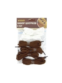 Шнурки для обуви 6 пар, длина 1м., бело-коричневые
