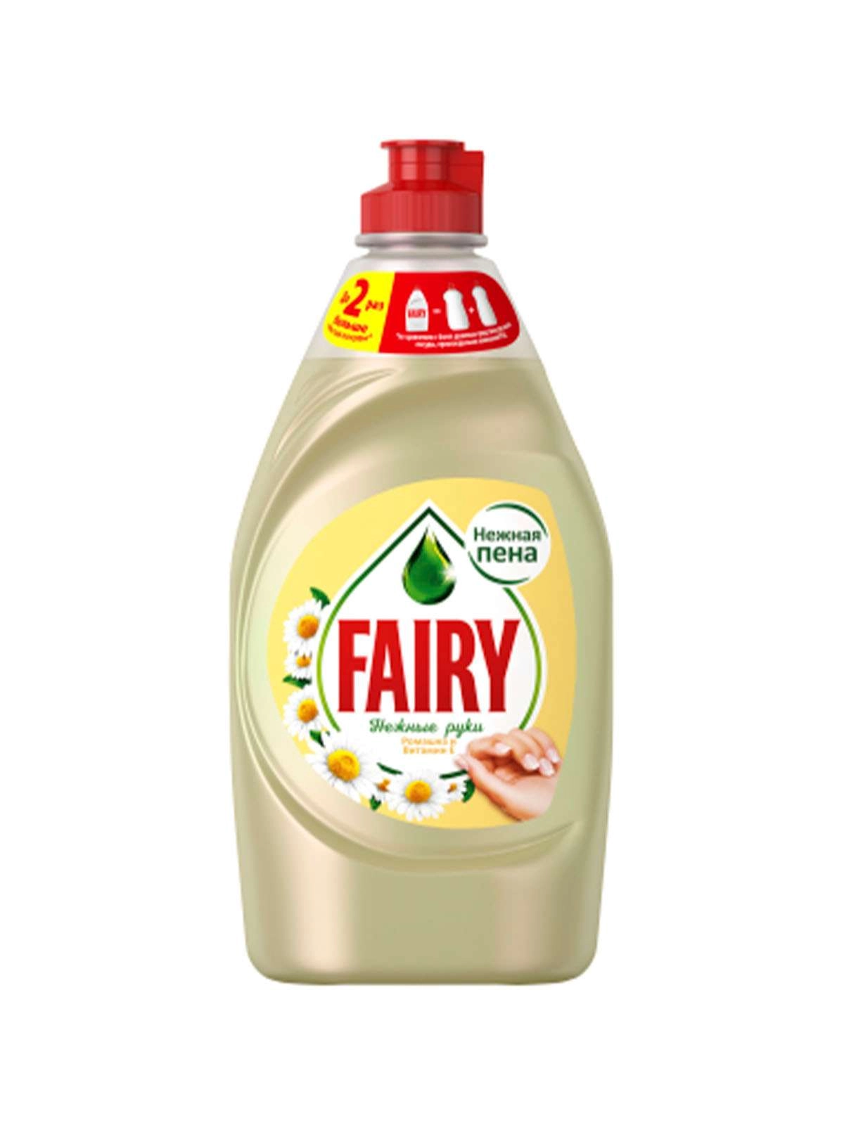 Fairy Нежные руки с экстрактом ромашки и витамином Е — эффективное моющее средство для посуды с формулой, против которой не устоят любые пищевые загрязнения. Молекулы средства глубоко проникают даже в