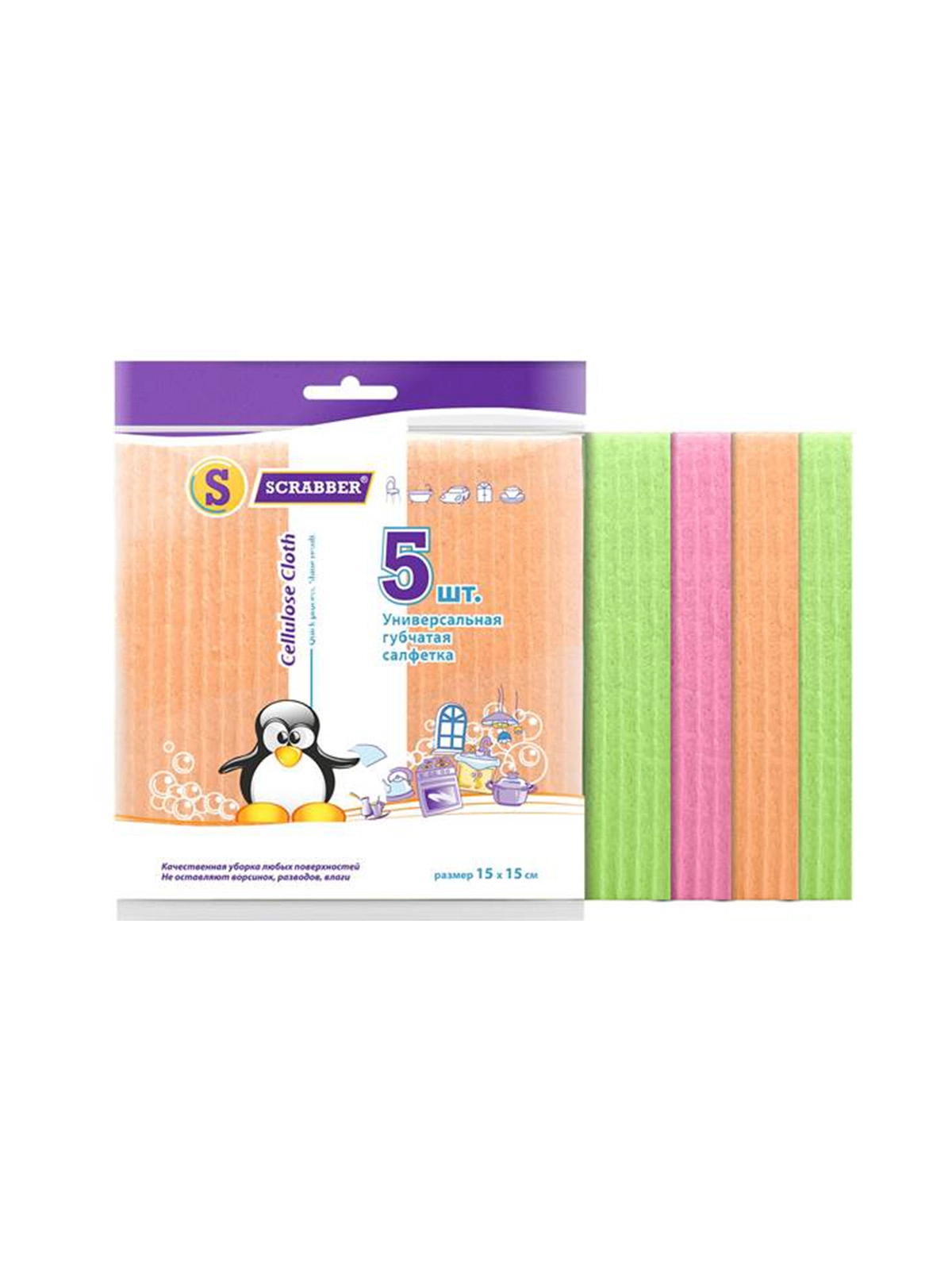 Универсальная губчатая салфетка15*15, 5шт.