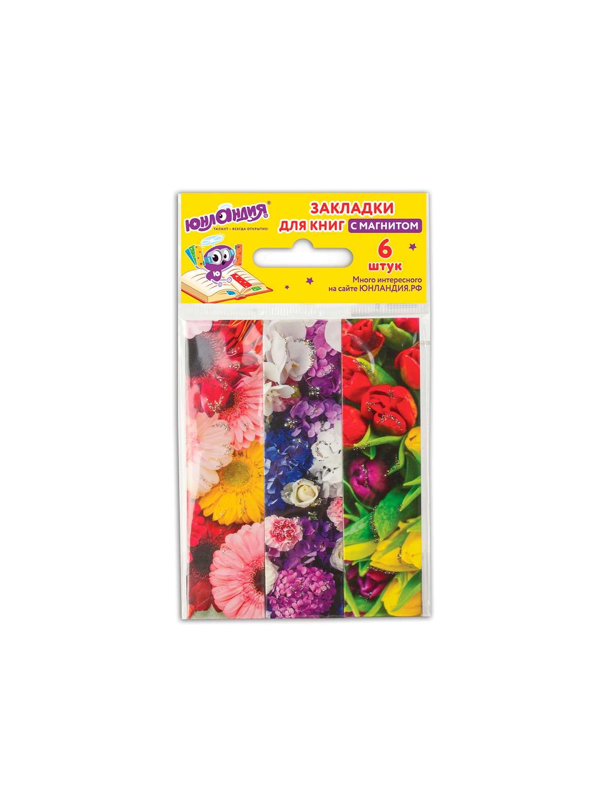 Закладки для книг "ЮНЛАНДИЯ" Цветы, 6шт, магнитные, блестки, 25x196мм