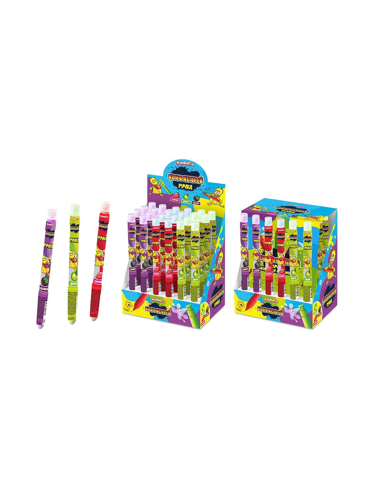 Жидкая кофета-спрей (КОНФИСПРЕЙ Ручка) со вкусом клубники, ежевики, яблока и ручка шарикова 6 мл